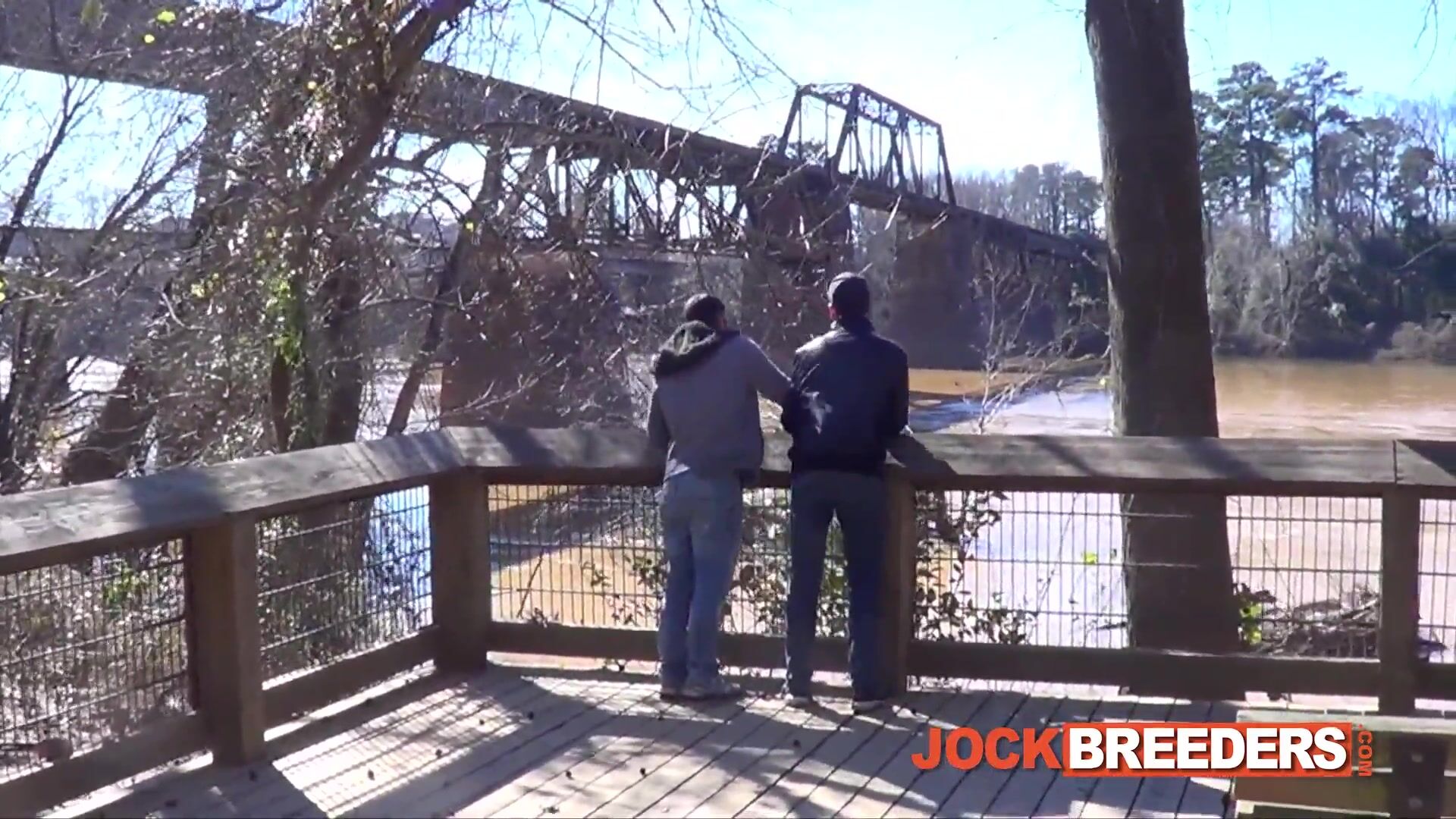 Brogan Reed und Lance Matthews machen einen scheinbar romantischen Spaziergang durch den Wald, bis ihr Spaziergang unanständig wird, als sie die Promenade verlassen und für einen Quickie in die Büsche gehen. Sie tragen beide Pullover und dicke Jacken, also ist es für Sex im Freien ein bisschen zu kühl. Lance sagt, sie sollten in ihr Hotelzimmer zurückkehren und fertigmachen. Zurück in ihrem Zimmer, wo es schön warm ist, ziehen sie sich schnell aus und Lance steckt bis zum Anschlag in Brogans fleischigem Sportlerarsch.