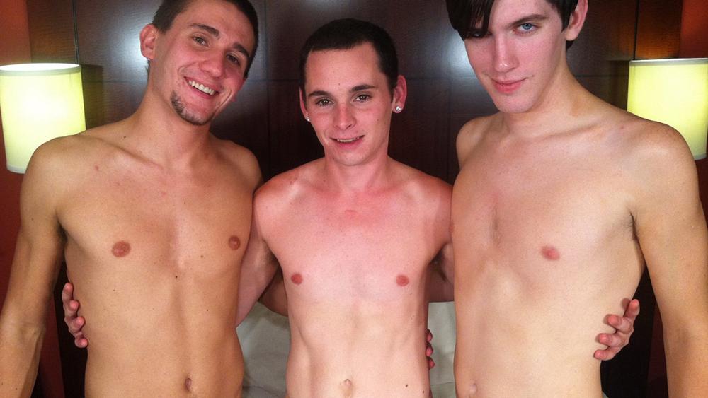 Alle guten Dinge kommen zu dritt und dieses Trio von heißen Typen ist da keine Ausnahme. Zu Jason Sparks Stammgästen bei Nationwide Model Search, Landon Wright und Tyler Page, gesellt sich eine weitere neue Pornoentdeckung, Blake Page. Er ist Fußballspieler und hat einen UNGLAUBLICHEN Körper. Der glückliche Tyler ist Fleisch in diesem sexy Sandwich und nimmt beide großen nackten Schwänze in seinen hungrigen Arsch auf.