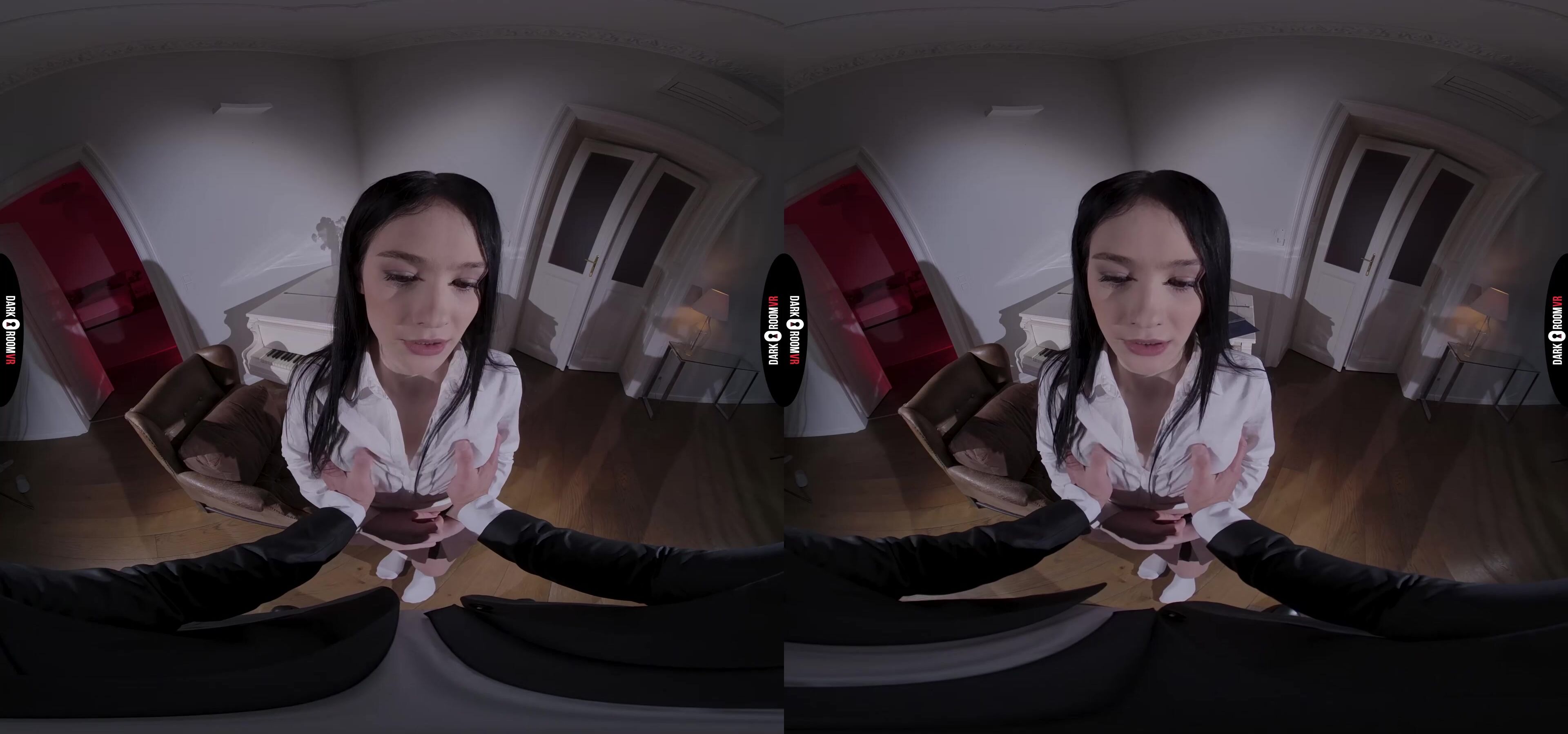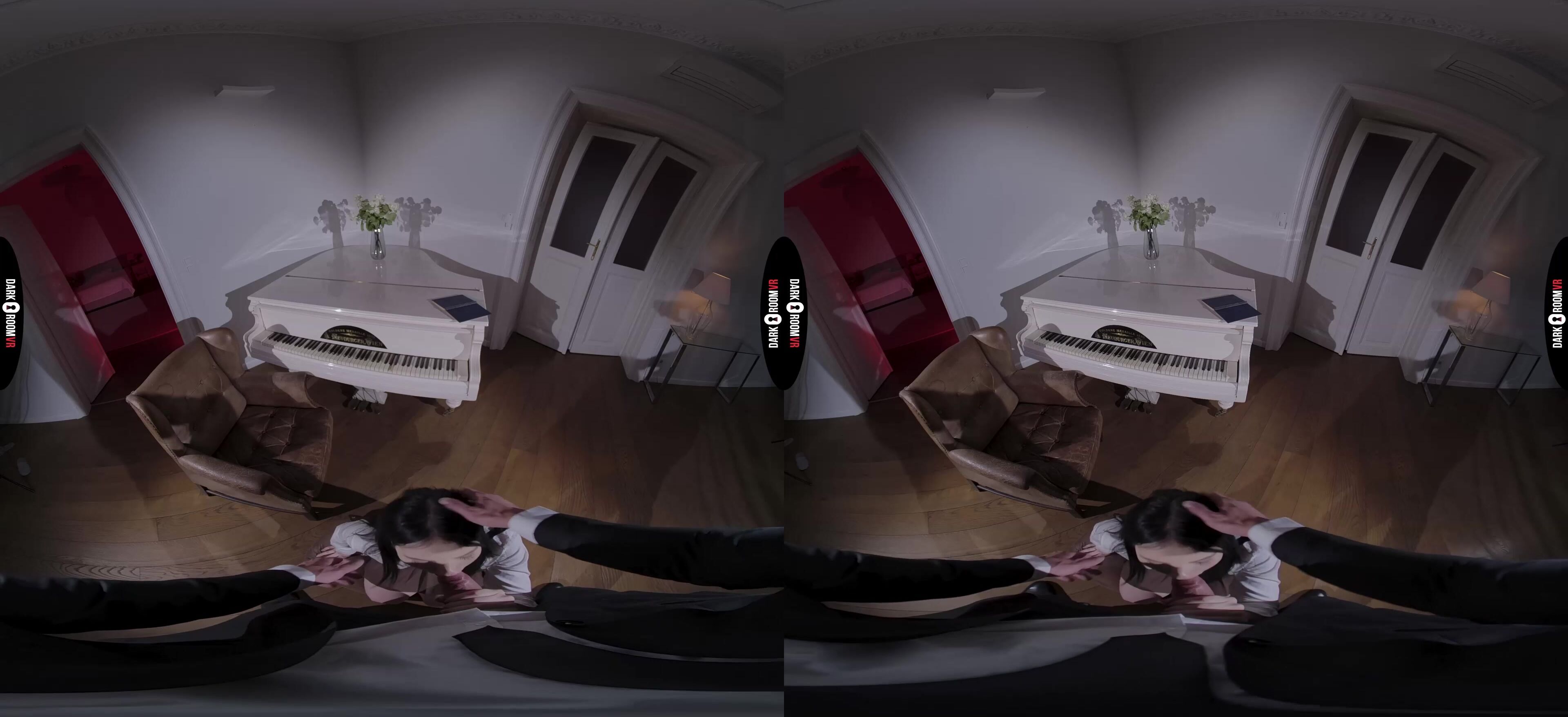 Die hübsche Matty ist eine sehr talentierte Musikerin. Ihre Eltern scheuen keine Kosten, um sicherzustellen, dass sie immer die besten Lehrer hat. Sie haben großartige Dinge über einen neuen Lehrer in der Stadt gehört. Er ist sehr teuer, exklusiv und ein bisschen geheimnisvoll. Er nimmt nur neunzehnjährige Schülerinnen an und besteht darauf, die erste Stunde allein zu Hause mit seiner Schülerin zu verbringen. Matty ist in der Nähe ihres neuen Lehrers nervös, besonders wenn er sie zu lange anstarrt. Da ist etwas Tiefes und Dunkles in seinen Augen, und es lässt sie am ganzen Leib warm werden. In dieser VR-Porno-Episode hört er ihr eine Weile beim Spielen zu und tadelt sie dann, weil sie zu steif ist. Sie muss lernen, loszulassen, und er weiß genau, wie er ihr diese Lektion beibringen kann. Er beugt sie vor und hebt ihren Rock an, wodurch ihr Hintern freigelegt wird. Da ihm gefällt, was er sieht, holt er seinen Schwanz raus und stellt ihre oralen Fähigkeiten auf die Probe. Sie will ihrem Lehrer gehorchen und tut, was der gutaussehende Fremde verlangt, und reißt sich fast das Höschen herunter, als er den Schatz sehen will, der zwischen ihren Beinen wartet. Sein Schwanz ist größer als jeder, den sie je in ihren Lieblings-VR-Pornovideos gesehen hat, und ihre Muschi brennt vor Verlangen, als er sie auf der Klavierbank im teuren Haus ihrer Eltern fickt. Matty wurde noch nie so hart gefickt, und ihre Muschi ist über und über mit seinem stoßenden Schwanz vollgesogen. Er lässt sie ihre Säfte von seinem Schwanz lecken, bevor er sie oben sitzen lässt, um so hart zu hüpfen, wie sie kann. Sie schließt die Augen und verliert sich so sehr in ihrer eigenen Lust, dass sie nicht bemerkt, wie er in ihre nackte Muschi spritzt. Dies ist nur ihre erste Lektion, aber sie kann die nächste kaum erwarten.