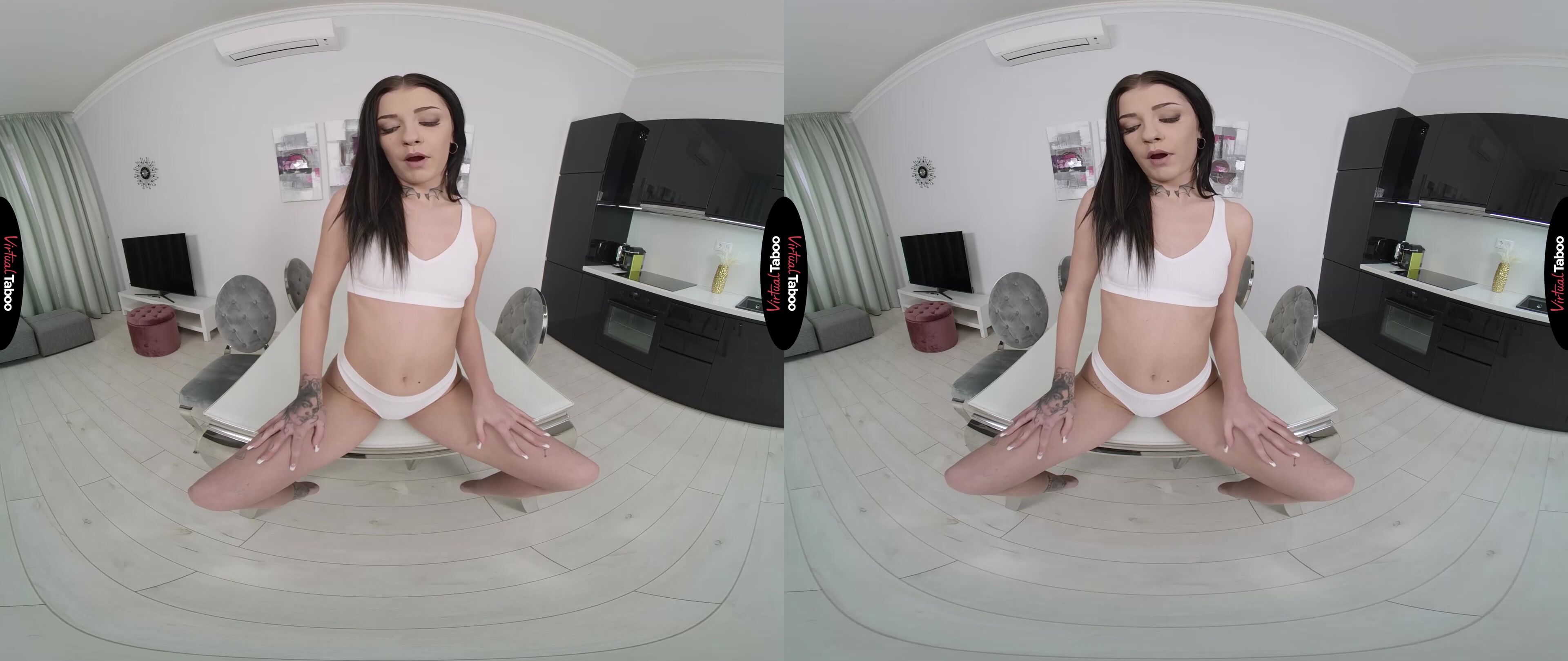 Sie wachen eines Morgens früh auf und der Geruch des frisch zubereiteten Frühstücks in Ihrer Wohnung riecht es. In der Annahme, Ihr Mitbewohner und seine Freundin kochen, gehen Sie hinaus, um guten Morgen zu sagen. Statt des glücklichen Paares beim Essen finden Sie nur die Freundin Ihres Mitbewohners, Chloe Heart, in einem knappen Outfit und mit einem Lächeln im Gesicht. Sie fragen, wo ihr Freund ist, und sie sagt Ihnen, dass er früh zum Fitnessstudio gegangen ist. Das Essen, das sie zubereitet hat, ist für Sie, ebenso wie alles andere, was Sie sehen. Chloe erklärt, dass sie schon immer in Sie verknallt war. Obwohl sie weiß, dass Sie sich wehren werden, da sie mit Ihrem Mitbewohner ausgeht, möchte sie, dass Sie ihr beim Spielen zusehen, um zu sehen, ob sie Ihre Meinung ändern könnte. Sie wissen, dass Sie es ihr wahrscheinlich jetzt sagen und sich mit etwas VR-Porno in Ihrem Schlafzimmer einschließen sollten, aber das ist schwer zu sagen, wenn man frisch gebackenes Gebäck und ihren tollen Arsch sieht. Jetzt, da sie Ihre Aufmerksamkeit hat, beginnt sie zu wackeln und zu necken, bis sie sehen kann, wie Ihr Schwanz in Ihrer Hose hart wird. Sie können mehr sehen, aber Sie müssen ihn rausholen und ihr zeigen, wie sehr Sie es mögen, sie anzusehen. Das scheint fair zu sein und sie lächelt, als sie deinen Schwanz pochen sieht. Wie versprochen zieht sie das Oberteil aus, um ihre kecken Titten zu zeigen. Du hast es immer gemocht, Chloe anzuschauen, aber das ist mehr, als du dir je hättest träumen lassen. Sie ermutigt dich, weiter zu streicheln, zieht ihr Höschen zur Seite und reibt ihre Muschi, während sie dir erzählt, dass sie gesehen hat, wie du sie angeschaut hast und dass sie davon fantasiert, dich zu ficken. Ihr gesteht dieselben tabuisierten VR-Fantasien und das treibt euch beide zu einem gleichzeitigen Höhepunkt.
