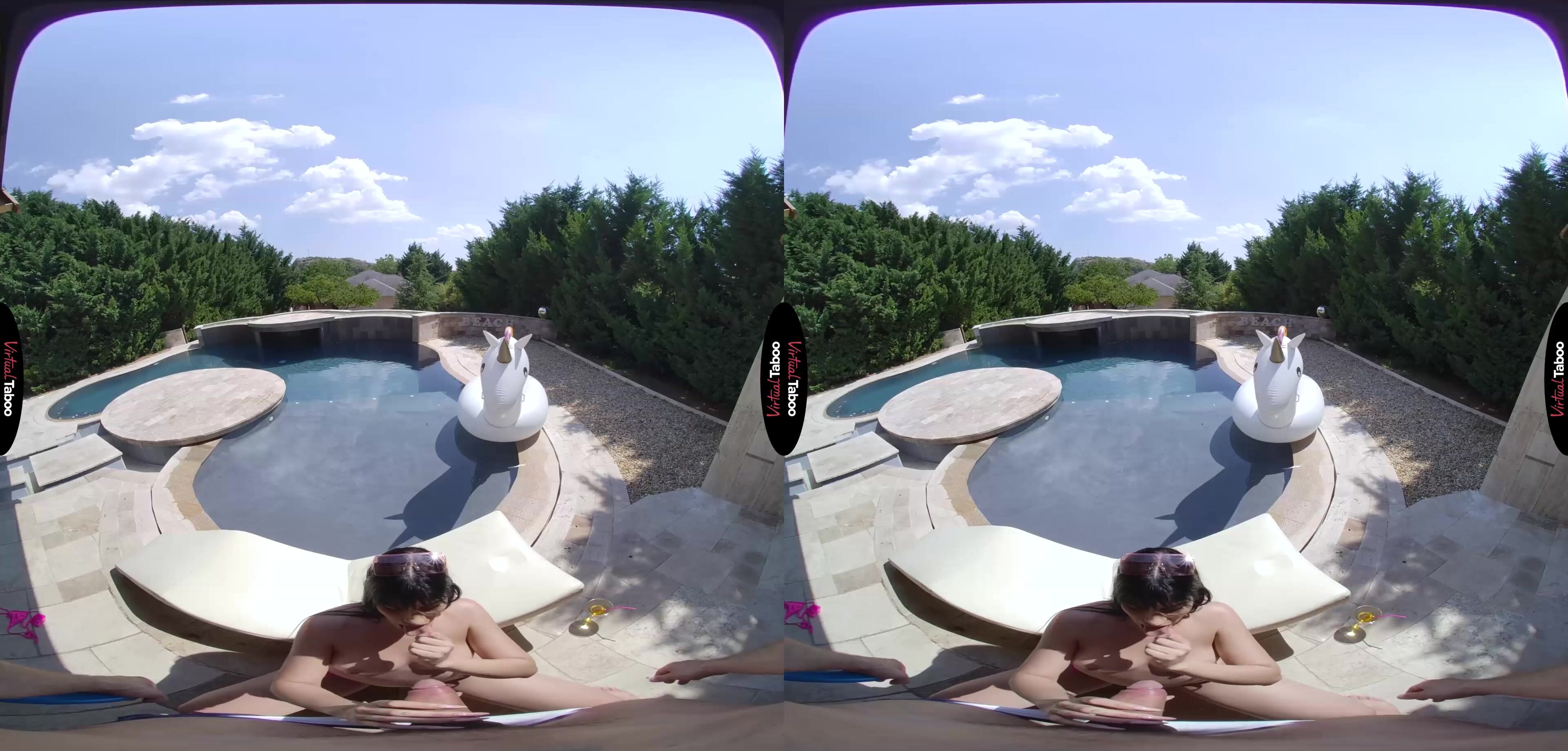 Yenifer Chacon hatte nie wirklich Probleme, Männer kennenzulernen. Sie ist hübsch, kontaktfreudig, selbstbewusst und bereit, für ihr Vergnügen so ziemlich alles zu tun. Deshalb war ihre sechswöchige Durststrecke so seltsam. Es war nicht wirklich so, dass sie keinen Mann finden konnte, sondern dass sie von der Idee besessen war, dass sie das Haus vielleicht nicht verlassen müsste, um jemanden aufzureißen. Seit ihr Vater seine vierte Frau geheiratet hatte, teilte Yenifer das Haus mit einem brandneuen Stiefbruder. Obwohl sie ziemlich promiskuitiv war, hatte sie noch nie etwas so Tabuisiertes getan, und die Idee aus einem aktuellen VR-Pornovideo machte sie verrückt. Sie machte es sich in einem freizügigen Bikini am Pool bequem und bat Sie, ihr etwas zu trinken zu bringen und dann etwas Sonnencreme auf ihren kaum bedeckten Körper aufzutragen. Als Sie fertig waren, es in ihre Wangen einzureiben, waren Sie hart wie ein Stein und konnten es nicht verbergen. In diesem VR-Pornovideo ließ Yenifer Sie wissen, dass es in Ordnung war, indem sie ihre Titten herausholte und Ihren Körper durch Ihre Badehose packte. Du wirst nicht nein zu ihr sagen, wenn sie deinen Schwanz in den Mund nimmt und ihn für ein intensives Ficken einschmiert. Du fickst sie noch besser, als sie gehofft hatte, und bringst sie im Handumdrehen dazu, im Hinterhof zu schreien. Sie liebt es, dir zu zeigen, wie sehr sie den Geschmack ihres eigenen Spermas auf deinem Schwanz genießt, bevor sie ihn wieder hineinsteckt, um ihn zu reiten, bis sie vollkommen befriedigt ist. Yenifer weiß aus Erfahrung, dass Männer es mögen, wenn ihr ins Gesicht spritzt, also lutscht sie dich, bis du über ihr explodierst. Als sie den Blick in deinen Augen sieht, weiß sie, dass sie nie wieder das Haus verlassen muss, um Sex zu haben.