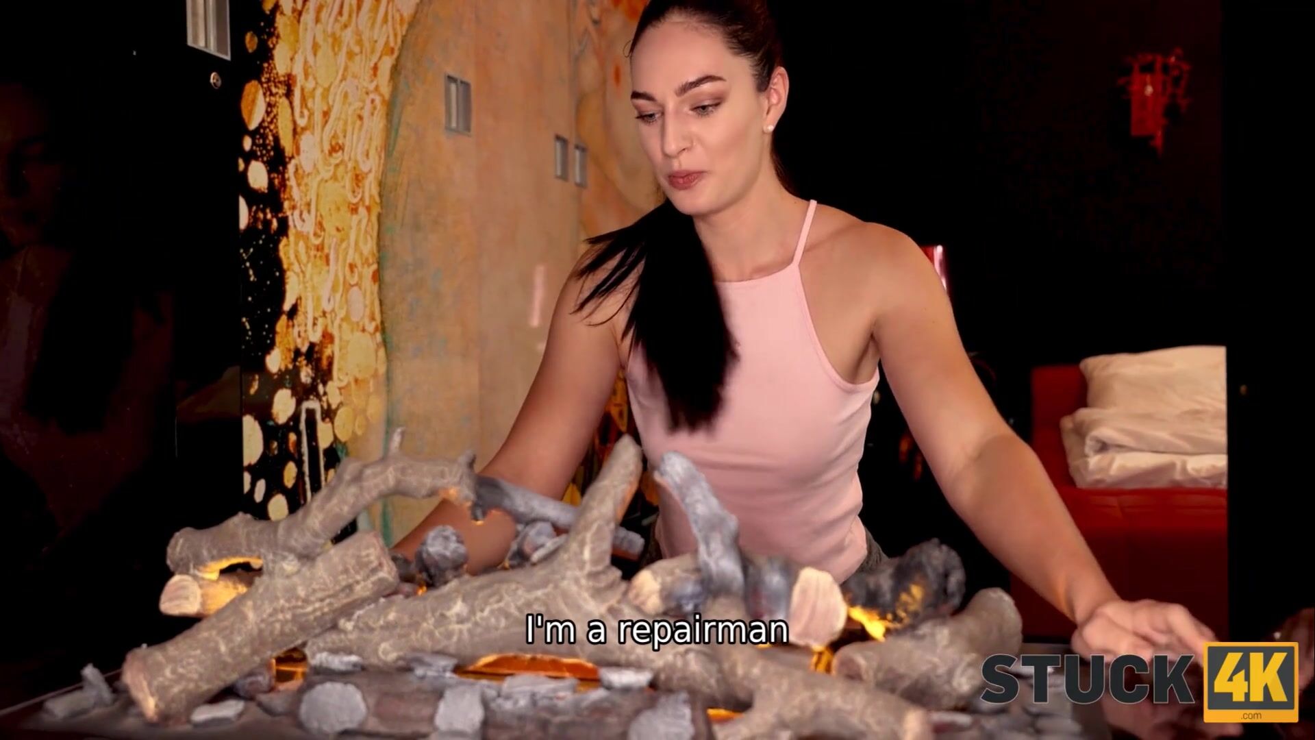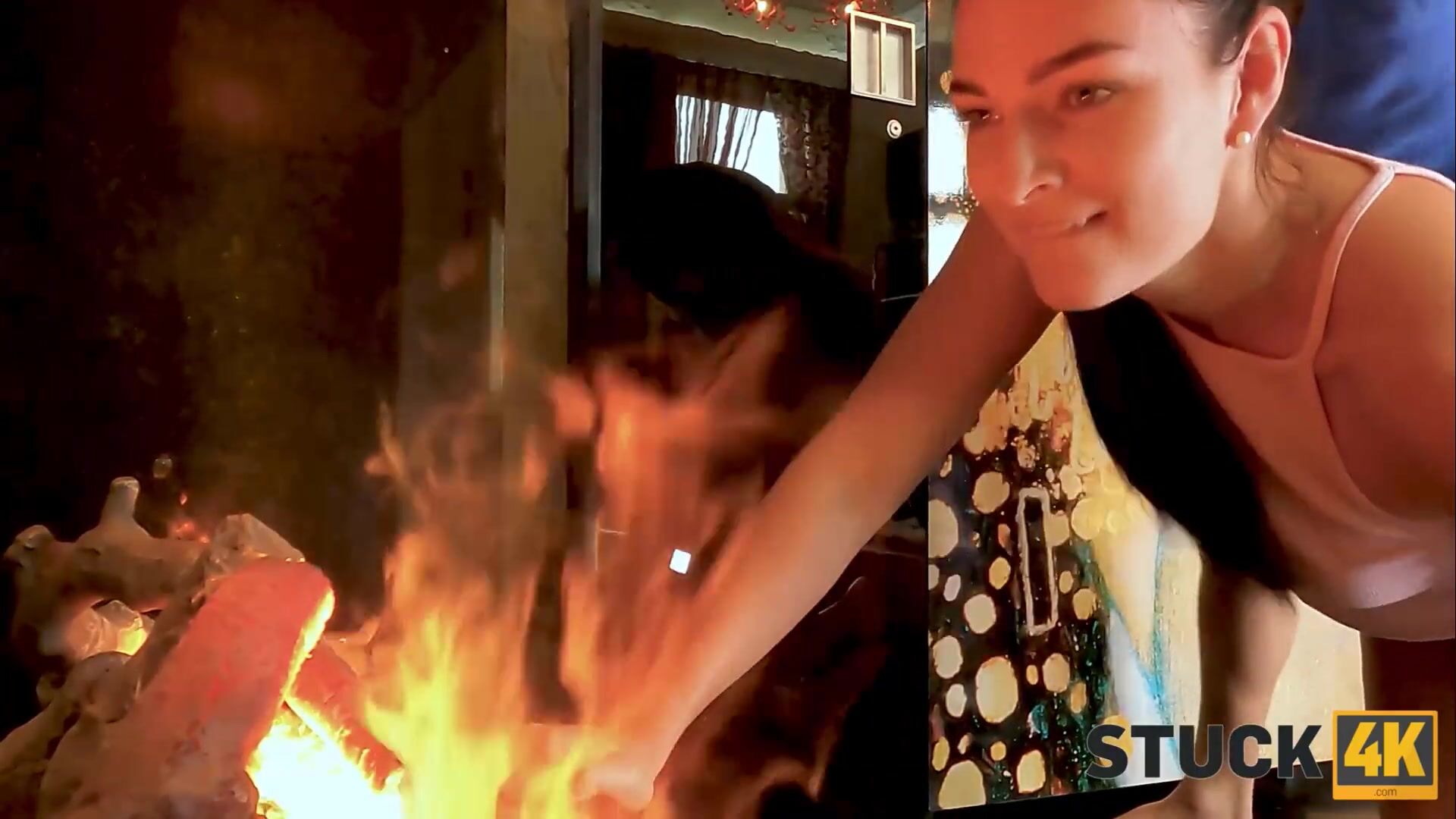 STUCK4K. Frozen Mädchen versucht aufzuwärmen und Sex am Kamin hilft wirklich