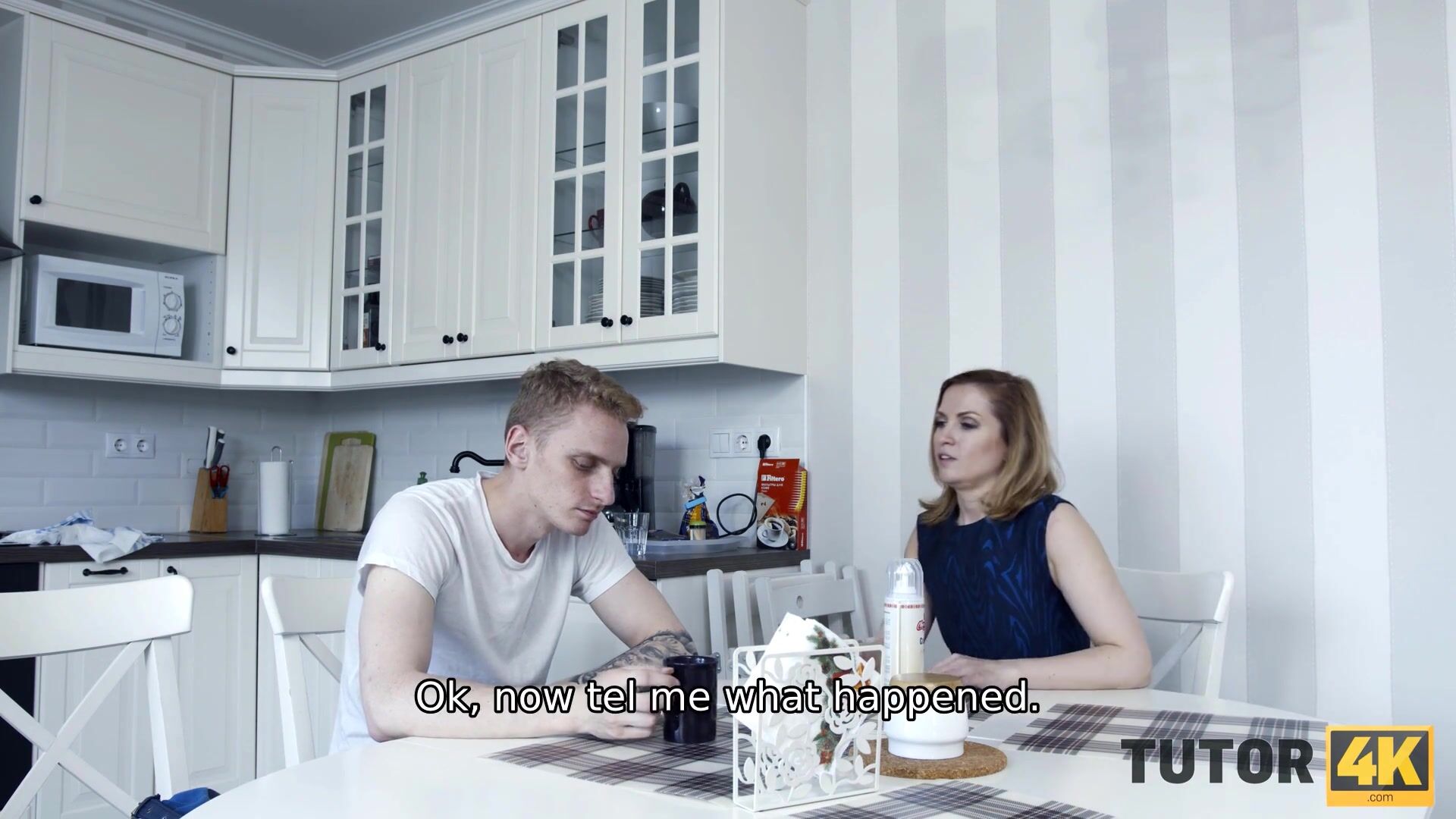 TUTOR4K. Reife Lehrerin kleidet sich auch wie Outfit und kam zu wütenden Schüler