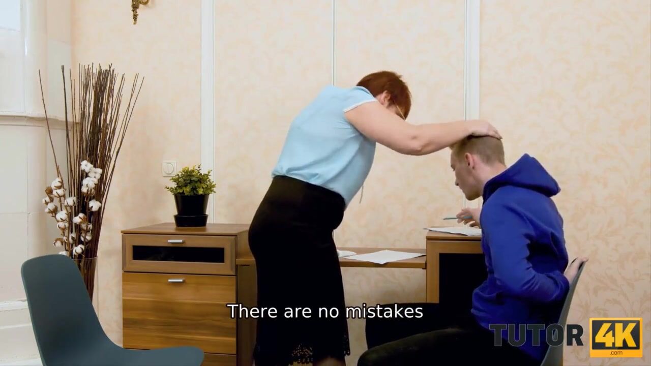 TUTOR4K. Rothaariger Lehrer erlaubt erregtem Schüler zu bohren
