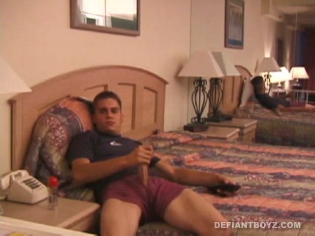 Rick befreit seinen übergroßen Penis aus Jeans und Boxershorts. Dann stellt er sich vor den Spiegel und schmiert sich ein. Mit Jeans und Boxershorts um die Knöchel zieht Rick das Shirt aus und bestätigt damit, dass er immer noch trainiert. Sein sehr schlanker und definierter Oberkörper zeigt die beeindruckende Rundung seines 20 cm langen Penis. Rick verschwendet keine Zeit und es dauert nicht lange, bis er uns signalisiert, dass er gleich kommt, und schon bald folgt ein Schwall Sperma.