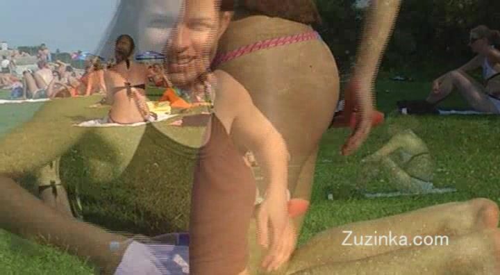 Zuzinka genießt die Sonne in der Öffentlichkeit