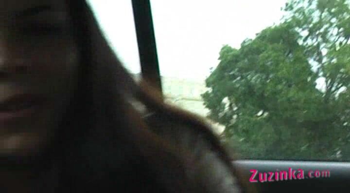 Zuzinka spielt in einem Taxi mit ihrer Vagina.